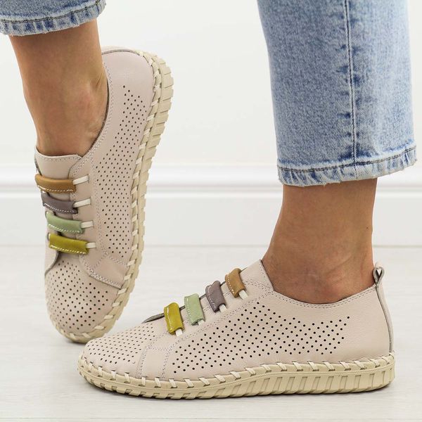 Beżowe skórzane ażurowe półbuty damskie T.Sokolski w26-03