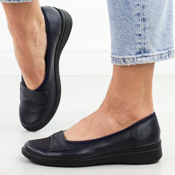 Granatowe skórzane Polskie półbuty damskie Gregors 1120