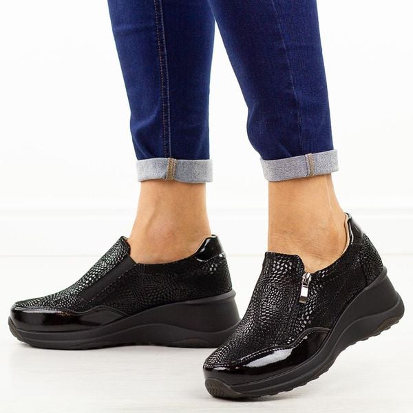 Czarne skórzane półbuty damskie na koturnie Filippo Dp6473/25