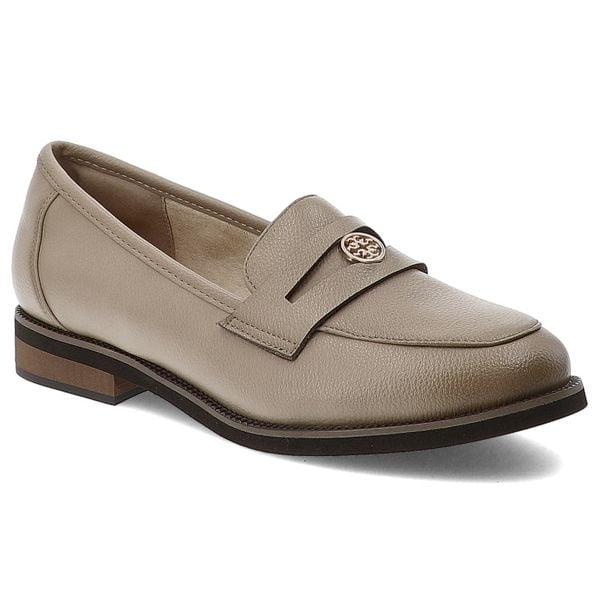 Mokasyny damskie Cambell, ze skóry licowej na płaskim obcasie z ozdobą i wsuwane, beżowe, 25-19301BG