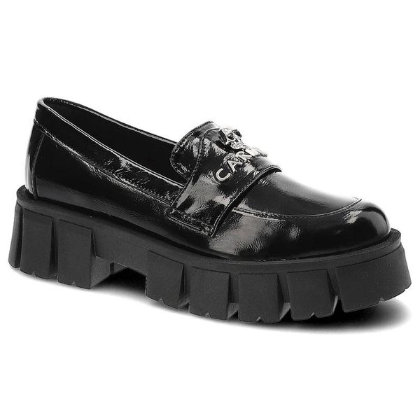 Półbuty damskie Carinii, lakierowana skóra naturalna wsuwanemasywna platforma, czarne, B8569_-070-000-000-F57