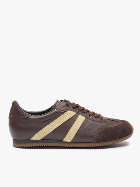 Brązowe półbuty sportowe z jasnożółtym paskiem