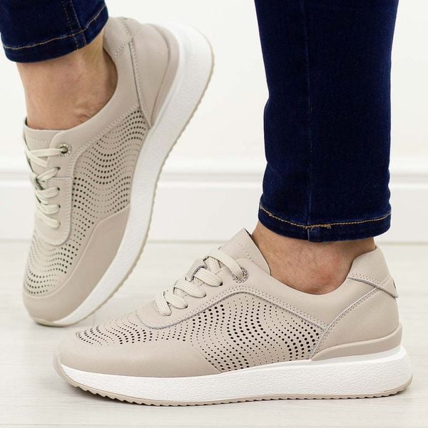 Beżowe ażurowe skórzane półbuty damskie S.Barski 51-551