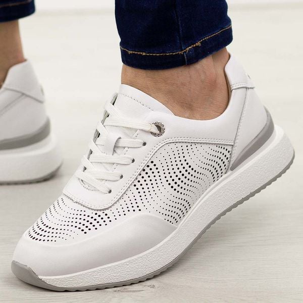 Białe ażurowe skórzane półbuty damskie S.Barski 51-551