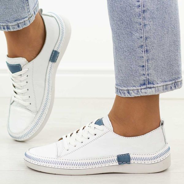 Biało nieb. skórzane półbuty damskie T.Sokolski 8260