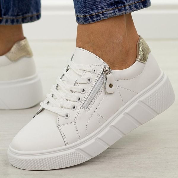 Białe skórzane półbuty damskie na platformie Jezzi 18-20