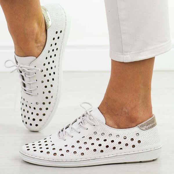 Białe skórzane ażurowe półbuty damskie S.Barski 644