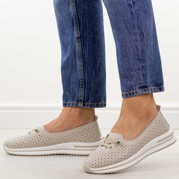 Beżowe ażurowe skórzane półbuty damskie S.Barski 7044