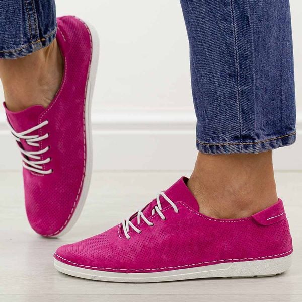 Fuksja ażurowe skórzane półbuty damskie S.Barski 7080