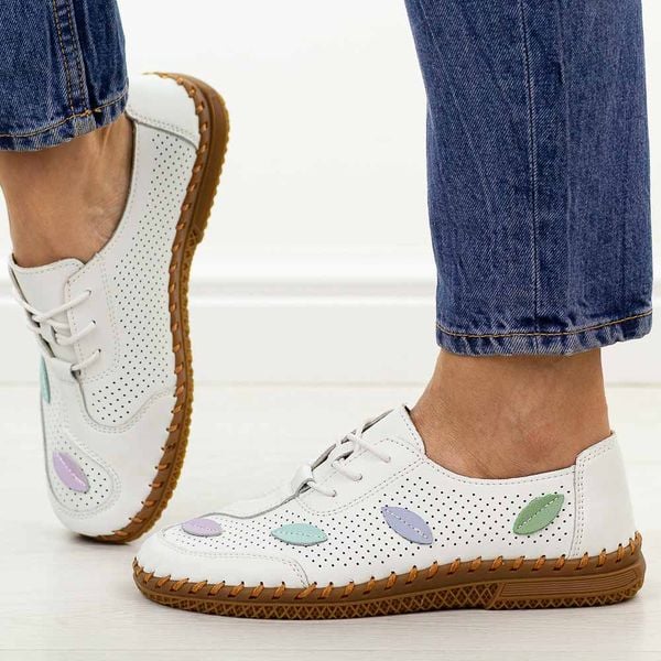 Białe ażurowe skórzane półbuty damskie Jezzi 8544