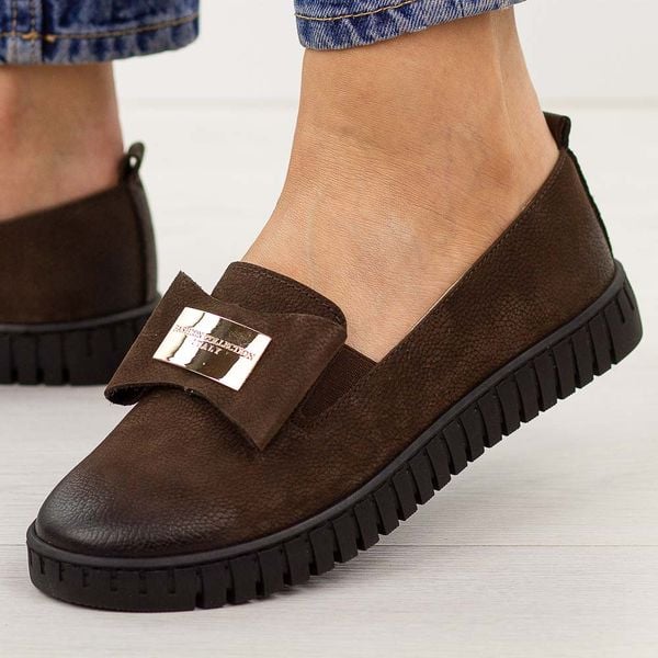 Czekoladowe skórzane Polskie półbuty damskie Deoni D057