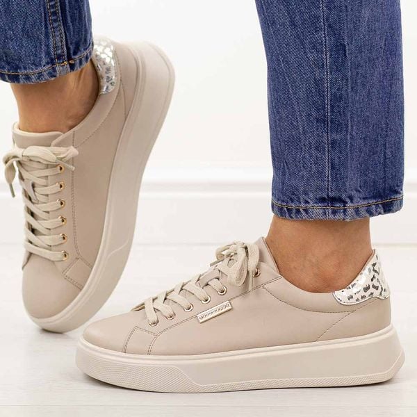Beżowe skórzane półbuty damskie na platformie Potocki 19398