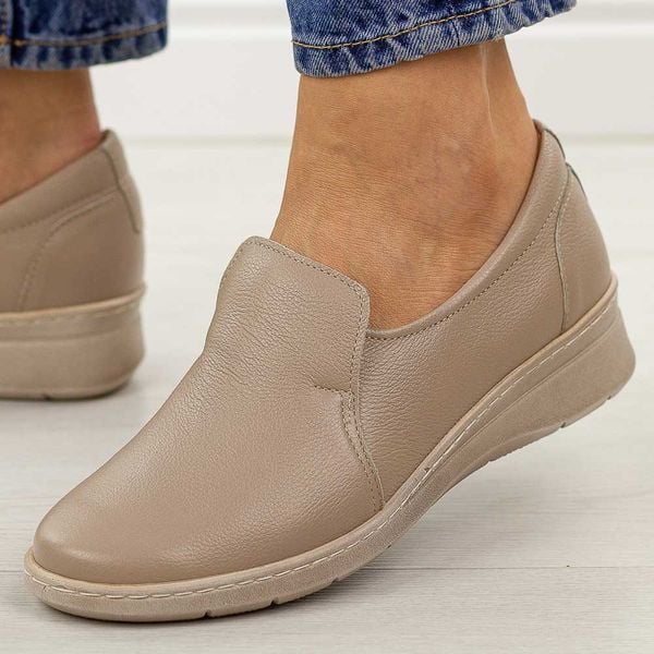 Beżowe skórzane Polskie półbuty damskie Góral 1798