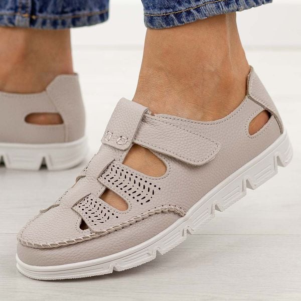 Szare przewiewne skórzane półbuty damskie Sergio Leone sp004