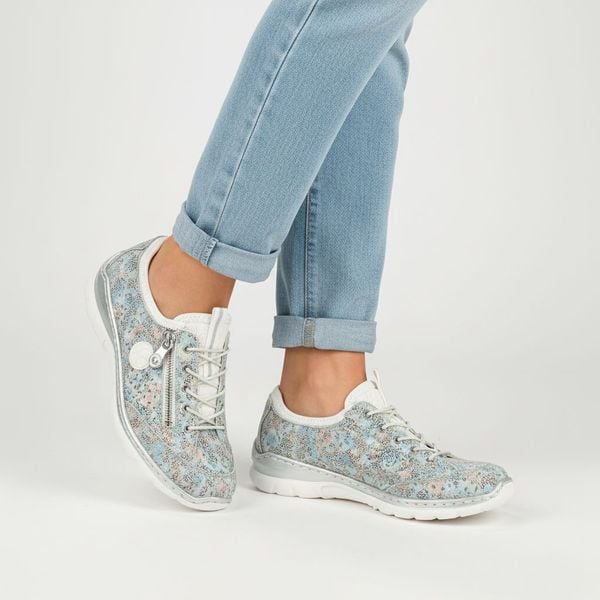 Półbuty damskie Rieker, cholewka materiałowa z nadrukiem kwiatowym wsuwane na płaskiej podeszwie, multikolor, L3252-91