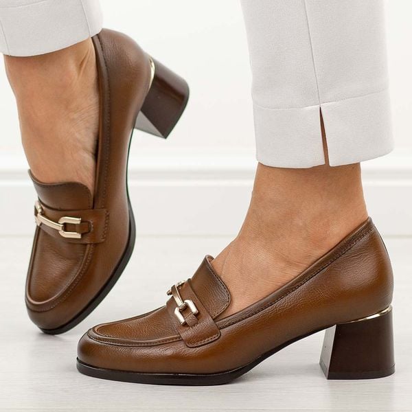 Brązowe półbuty damskie na obcasie Potocki 12784
