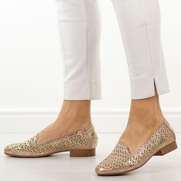 Złote ażurowe półbuty damskie M.Daszyński Sa222-14
