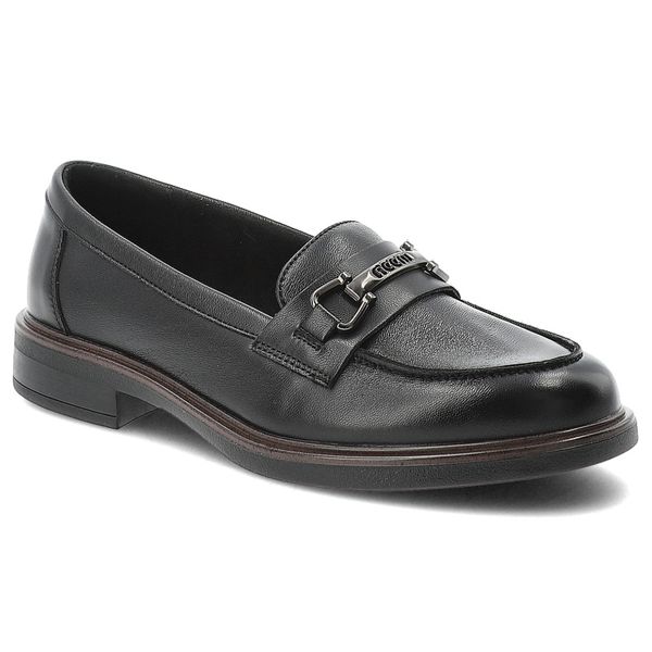 Mokasyny damskie Vinceza, skóra naturalna wsuwany fason klasyczne loafersy metalowa ozdoba niski stabilny obcas solidna podeszwa, czarne, 39983