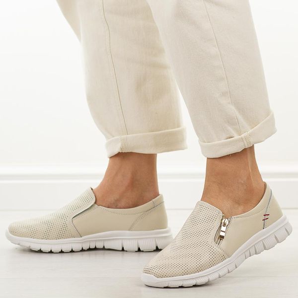 Beżowe skórzane półbuty damskie Jezzi 9819