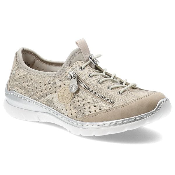 Półbuty damskie Rieker, skóra naturalna ażurowa cholewka elastyczne sznurowanie suwak boczny miękka wkładka lekka i amortyzująca podeszwa, złote, L32
