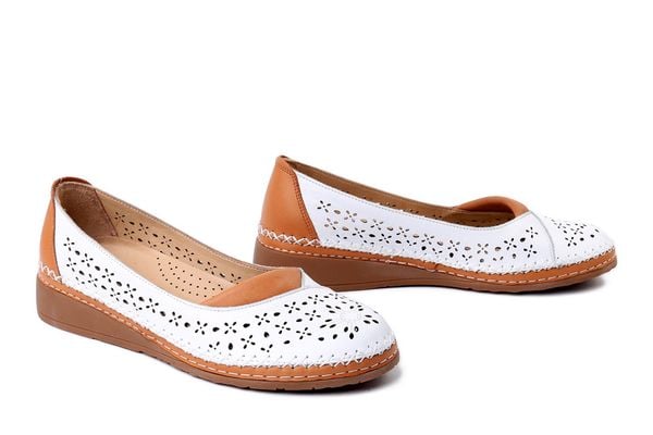 Półbuty damskie. Naturalna skóra. Ażurowa cholewka. Skórzana, wyjmowana, częściowo perforowana wkładka. Elastyczna, trwała podeszwa TR.