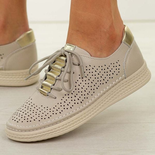 Beżowe skórzane ażurowe półbuty damskie S.Barski 5992