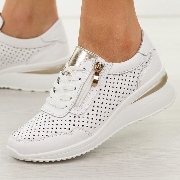 Białe skórzane ażurowe półbuty damskie Vinceza 95402