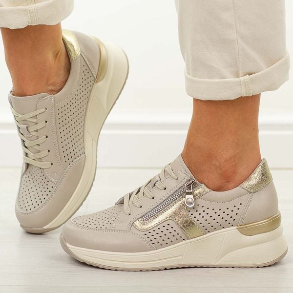 Beżowe skórzane ażurowe półbuty damskie Vinceza 95403