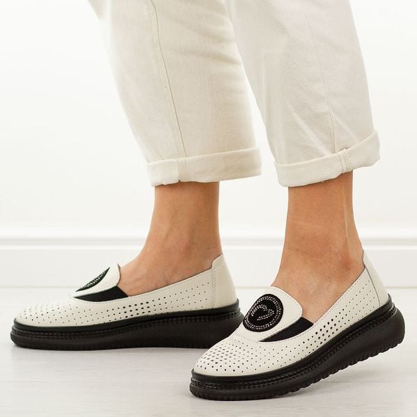 Białe skórzane ażurowe półbuty damskie Vinceza 95388