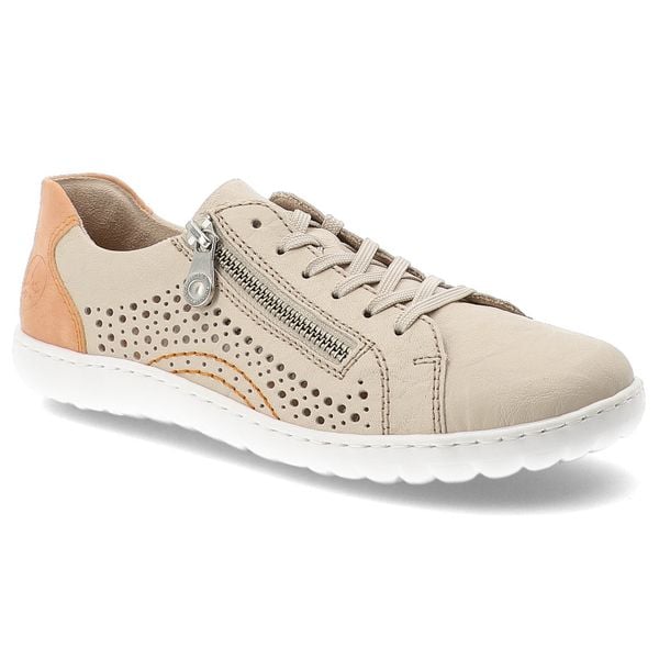 Półbuty damskie Rieker, ze skóry naturalnej licowej ażurowa cholewka zamek i sznurowanie lekka podeszwa, beżowe, 52824-60