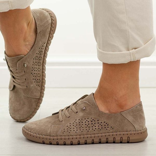 Beżowe skórzane półbuty damskie Vinceza 95362