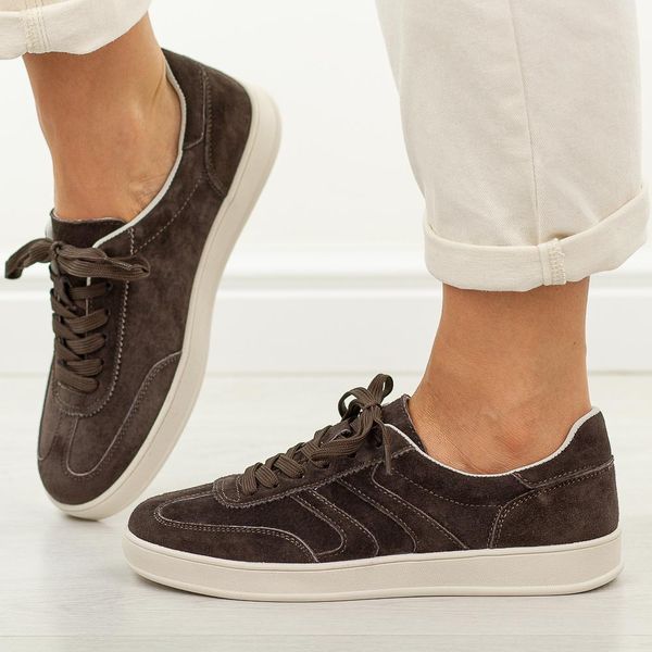 Casualowe brązowe skórzane półbuty damskie Vincezato doskonały wybór na wiosnę, lato i jesień dla kobiet ceniących styl i wygodę. Cholewka wykonana z wysokiej jakości skóry naturalnej zamszowej nadaje obuwiu wyjątkowego charakteru i podkreśla jego modny wygląd. Wnętrze wyposażono w miękką skórzaną wkładkę, która zwiększa komfort nawet podczas całodziennego noszenia. Model jest sznurowany, co pozwala na idealne […]