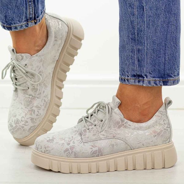 Srebrne skórzane półbuty damskie Filippo Dp6846/26