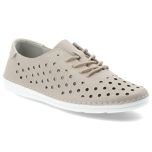 Półbuty damskie S.Barski, cholewka ze skóry naturalnej gładkiej z perforacją na całej powierzchni klasyczne sznurowanie zaokrąglony nosek niski fason lekka podeszwa jednolita bryła wykończenie przy kostce, beżowe, LR61-644
