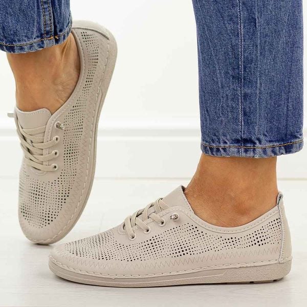 Beżowe ażurowe skórzane półbuty damskie S.Barski 7083