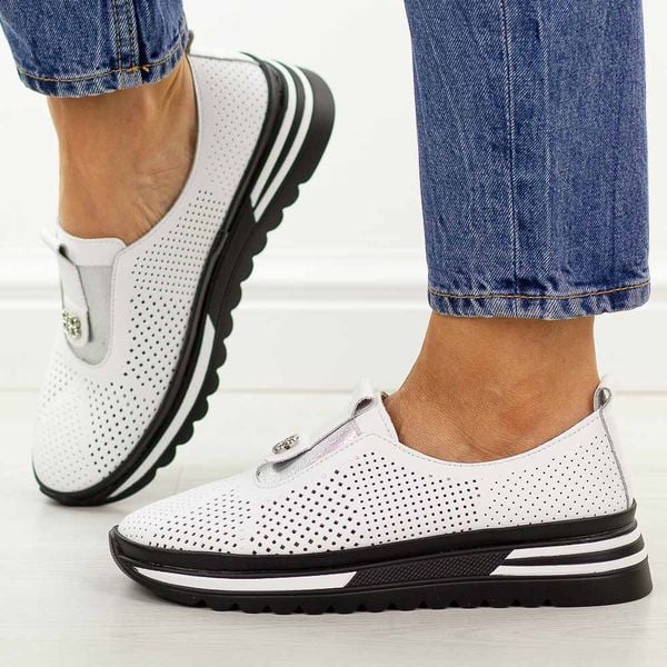 Białe ażurowe skórzane półbuty damskie S.Barski 7092
