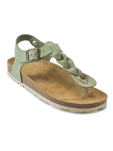 – zapięcie: sprzączka- noski: otwarte- detale: plecionka- skórzana wkładka: ergonomicznie formowana- podeszwa: antypoślizgowa