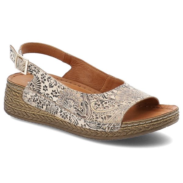 Sandały damskie Maciejka, skórzane we wzorki na platformie zapinane sprzączką, beżowe kwiatowe, L7069-04-00-1
