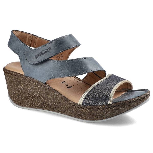Sandały damskie Florance, na koturnie i zapinane na rzep, jeansowe, 22976