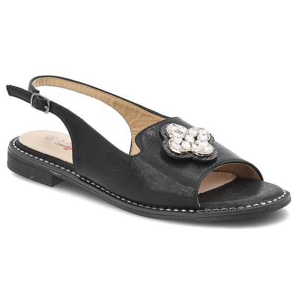 Sandały damskie S. Barski, ze skóry ekologicznej na płaskim obcasie z ozdobą, czarne, KV51-080