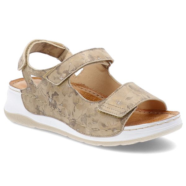 Sandały damskie Wasak, na wysokiej platformie skórzane we wzorki na rzepy wygodne, beżowe kwiatowe, 765