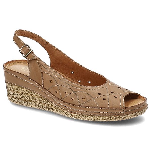 Sandały damskie Pollonus, wykonane ze skóry naturalnej licowej z ażurową perforacją na cholewce wsuwaną konstrukcją z odkrytą piętą i podeszwą na kot