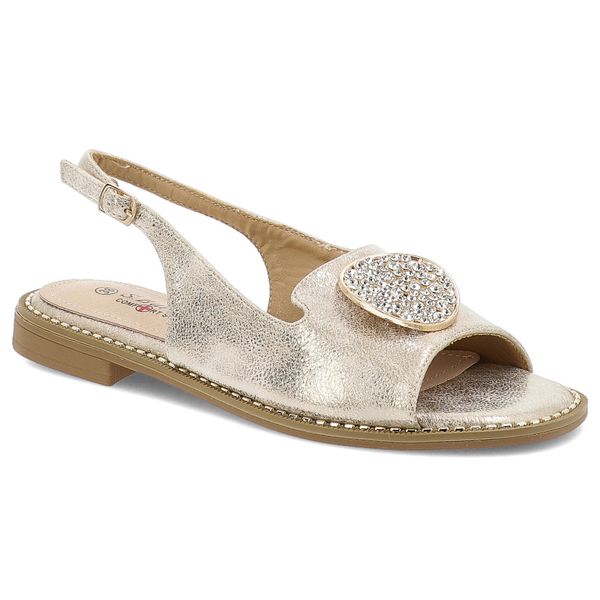 Sandały damskie S. Barski, z eko skóry z ozdobą na płaskim obcasie, jasne złoto, KV51-083