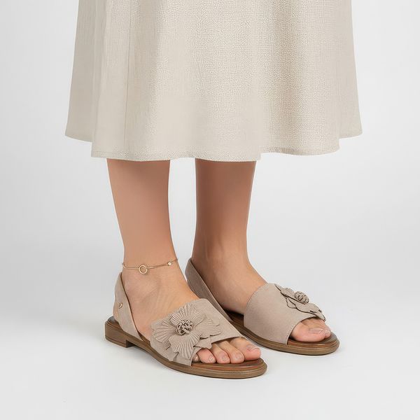 Sandały damskie Armodo, cholewka ze skóry naturalnej odkryta konstrukcja z ozdobnym kwiatem stabilna płaska podeszwa zapewniająca wygodę, beżowe, 404
