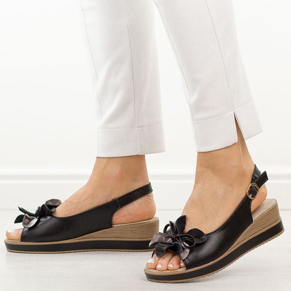 Czarne skórzane sandały damskie na koturnie T.Sokolski L26-679