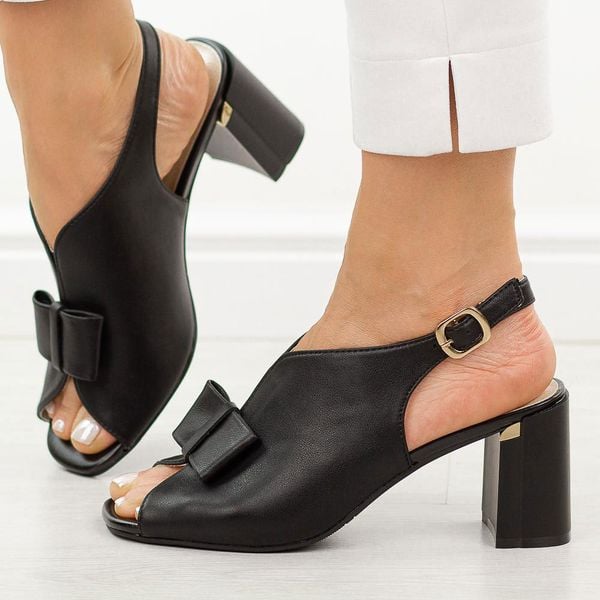 Czarne skórzane sandały damskie na słupku M.Daszyński 25112-5