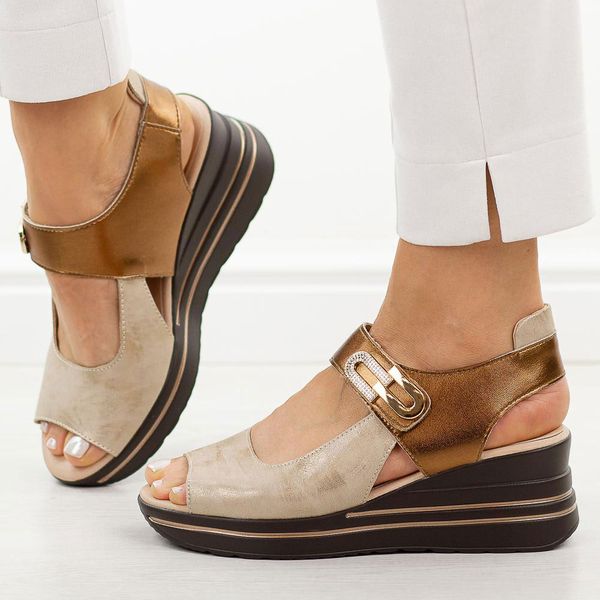 Skórzane cooper sandały damskie na koturnie M.Daszyński 25144-1