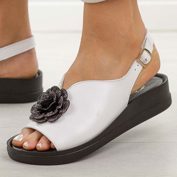 Białe skórzane Polskie sandały damskie na platformie Deoni L134