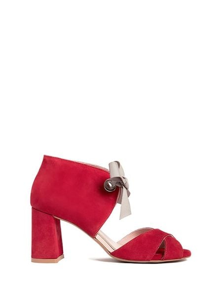 – skóra welurowa- noski: otwarte- detale: ozdobne wiązanie- wyściółka: miękka- skórzana wkładka: tak- forma obcasa: blokowy