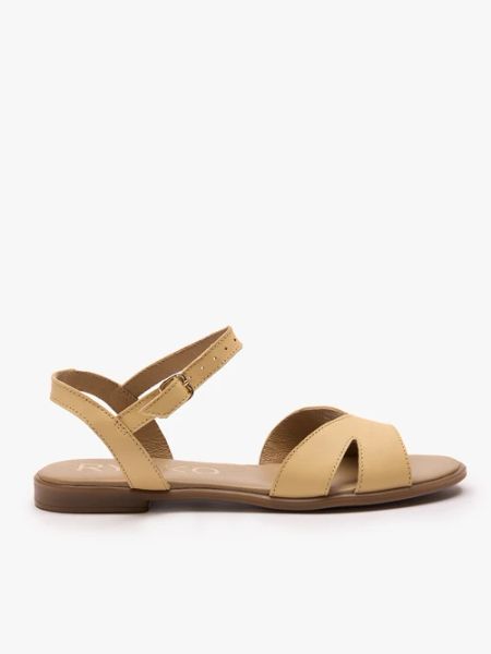 Żółte płaskie sandały ze skóry licowej